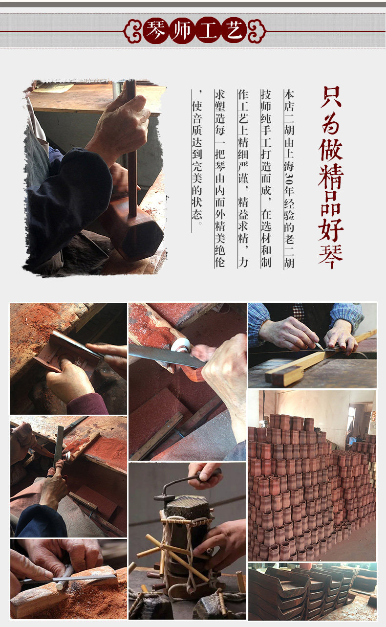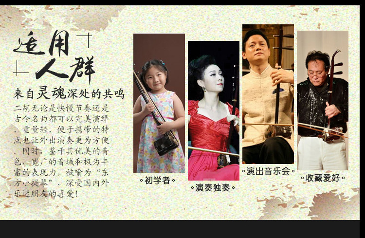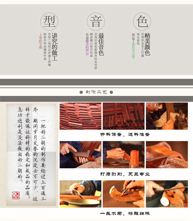 панель По сравнению с другими инструментами Huqin в Китае, самая большая особенность состоит в том, что громкость велик, звук четкий и яркий, особенно хорош в производительности высокая HEP, захватывающие, теплые и горячие эмоции, но также красивые и красивые мягкий специальность.