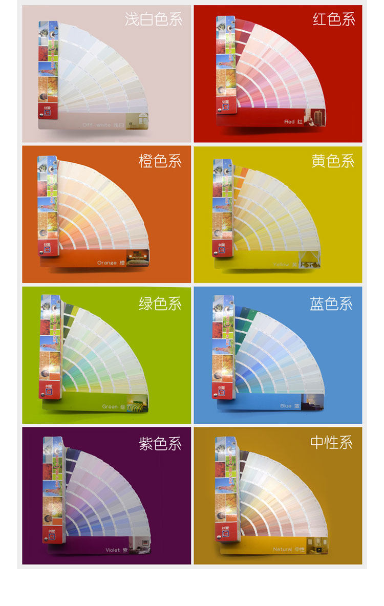 Введение функции | Большой цветовой блок -дисплей, который увеличивает степень распознавания цвета, так что выбор цвета и цвет цвет Это удобнее соответствовать.Вся цветовая карта разделена на красный , Оранжевый, желтый, зеленый, синий пурпурный6Большой цвет цвет Ряд светло белый ряд(off-white), Выбор восточного цвета удобнее. Часть цветовой карты имеет стандартный знание стандартный Помните: aС черный Крупный цвет цвета указывает на то, что цвет можно использовать для раскраски продуктов серии продуктов; bРекомендуется использовать этот цвет для живописи внутренней стены; c2. Рекомендуется, чтобы при использовании цвета рекомендуется покрасить цвет несколько раз и не добавлять воду, чтобы разбавить |