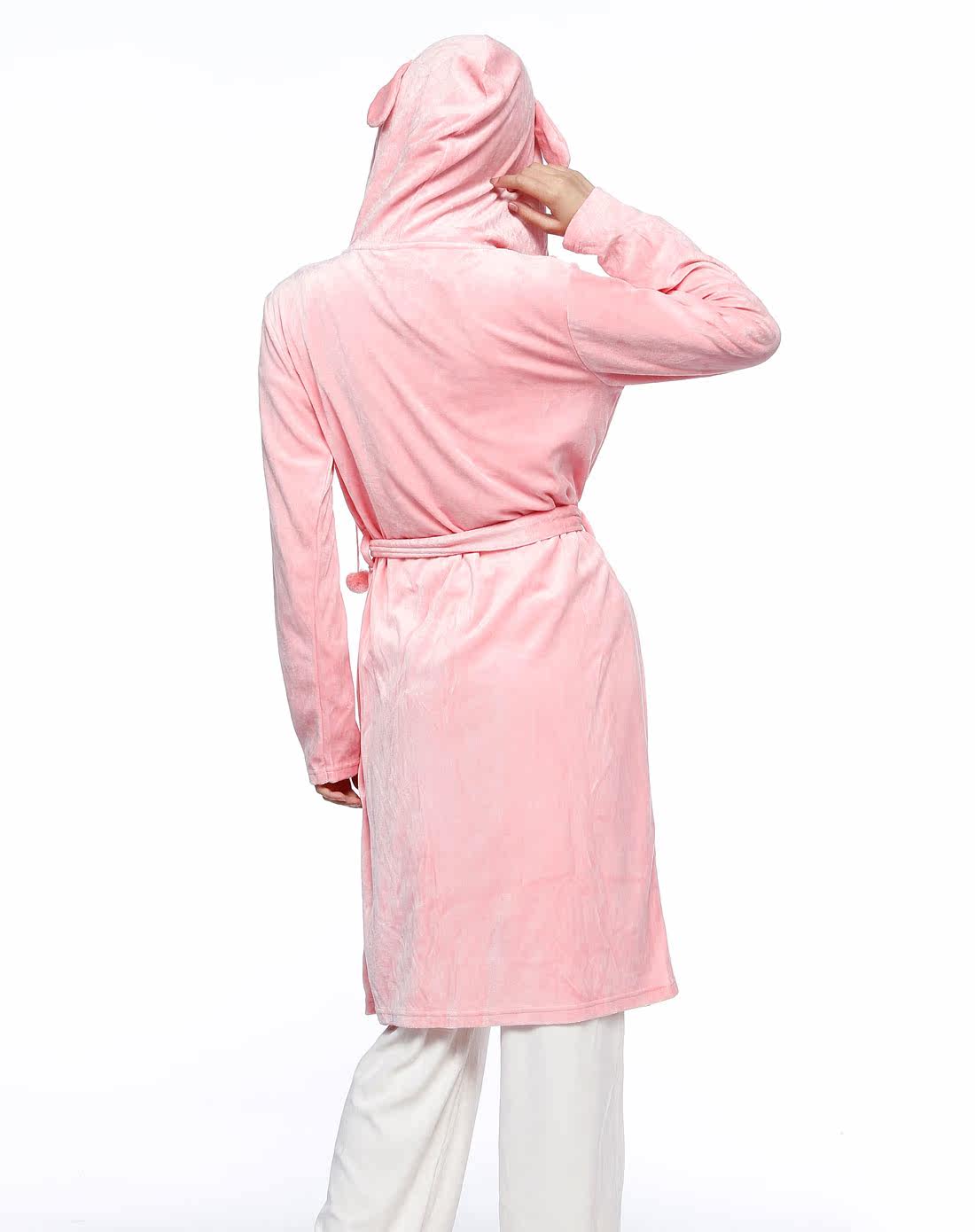 Снопоночно розовый замшевый капюшон длинный рукав домашние Ночная рубашка