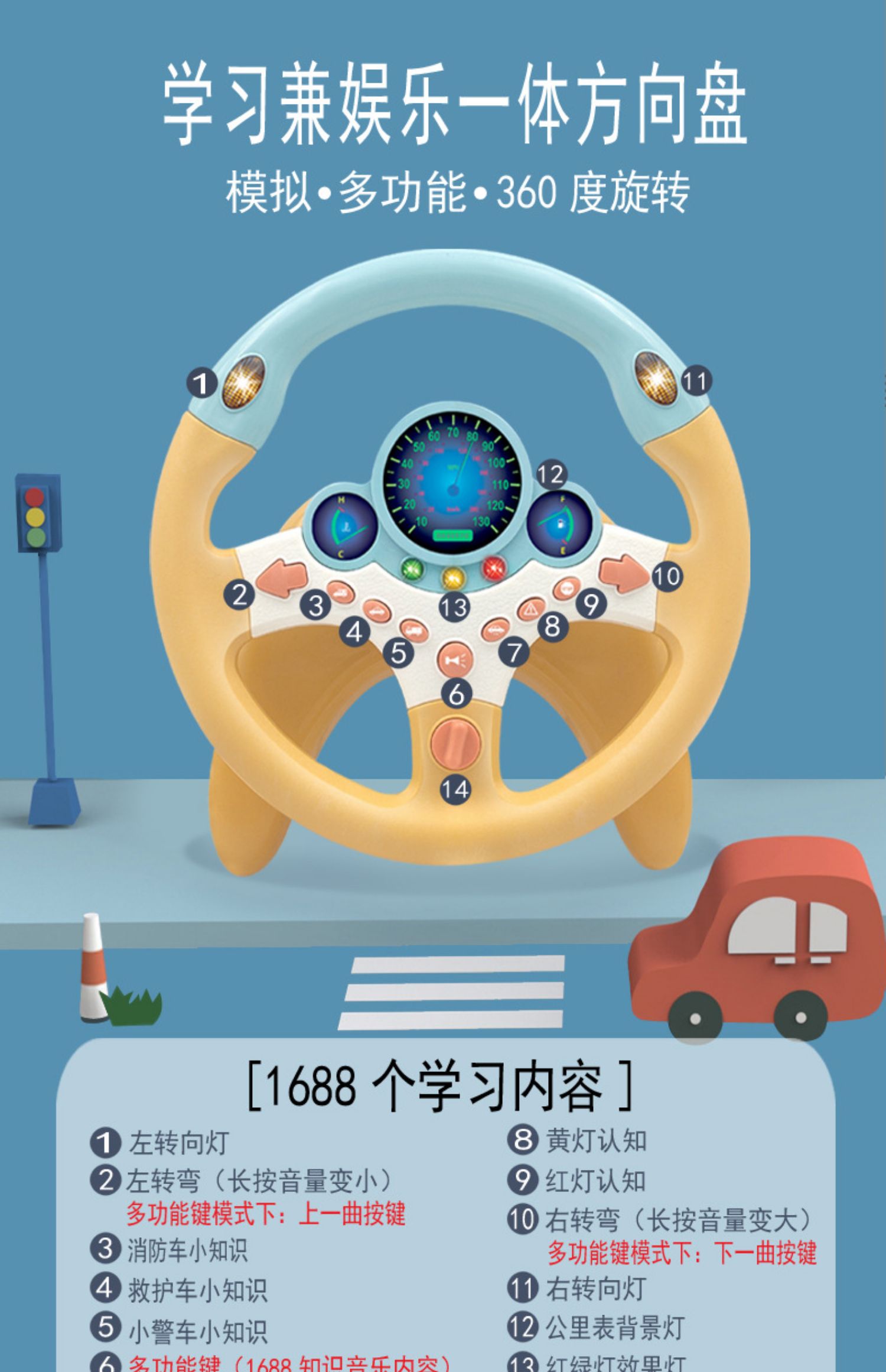 - Обновление Многофункциональность желтый Рулевое колесо+зарядка комплект