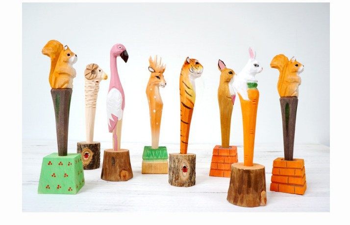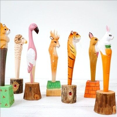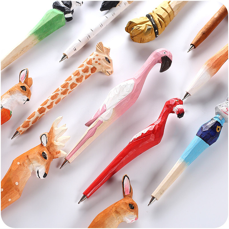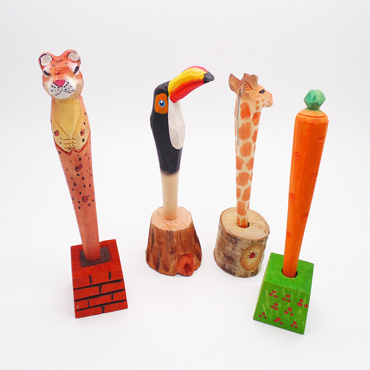 Мультяшная резьба по дереву с гелевой ручкой для животных ручная работа Резьба милый жираф морковь фламинго