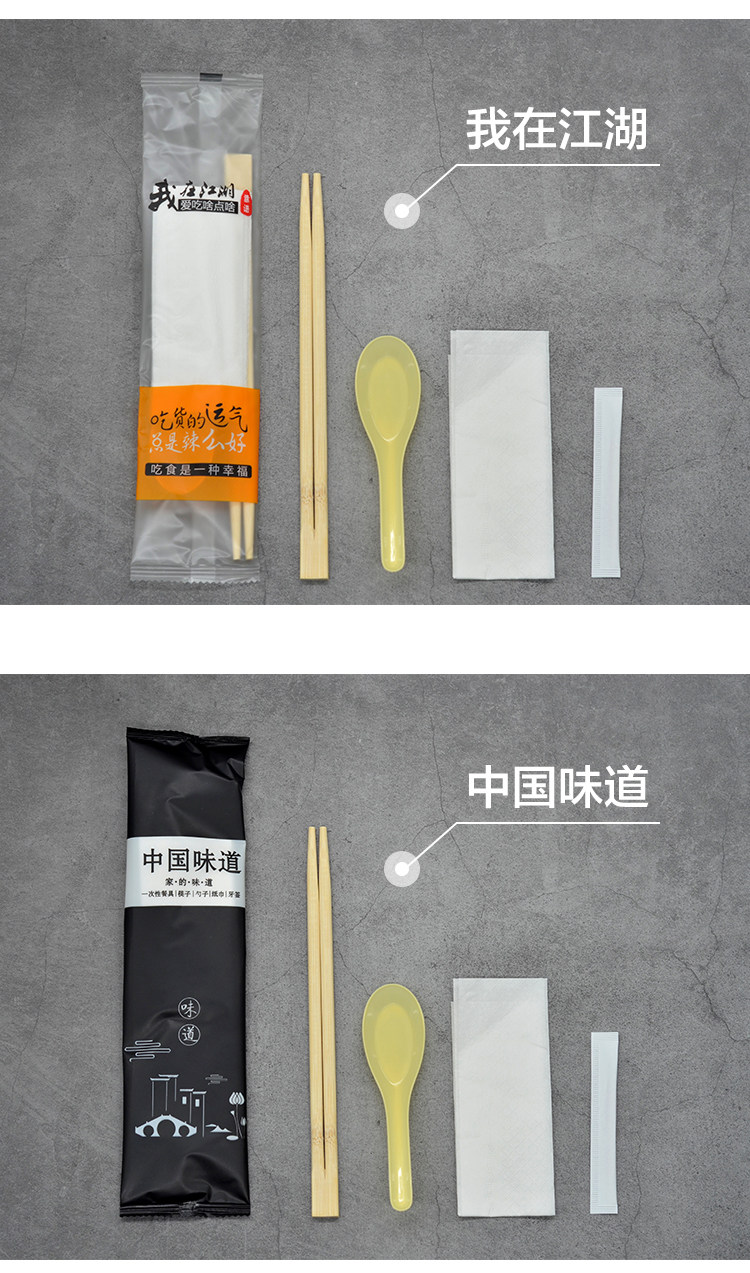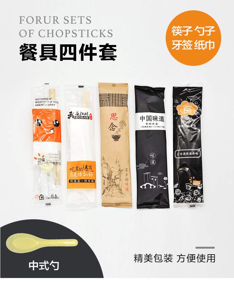 Один раз 4 предмета Палочки для палочек ложка зубов подписано ткани бумаги четыре комплект Доступно с фаст-фудом на вынос пакет посуда