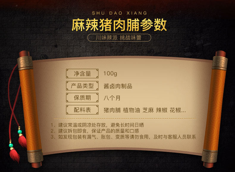 Острый магазин из свинины Snack Sichuan Специальность пряного свинины 蜀 香 香 猪 脯 脯 Специализированная ловца закуска 100G