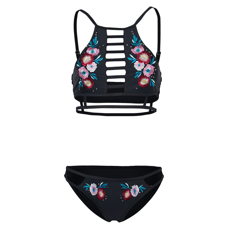 Таинственный океан новая коллекция черный Вышитый раздельный купальник женский пляжный отдых бикини полые сексуальные купальники