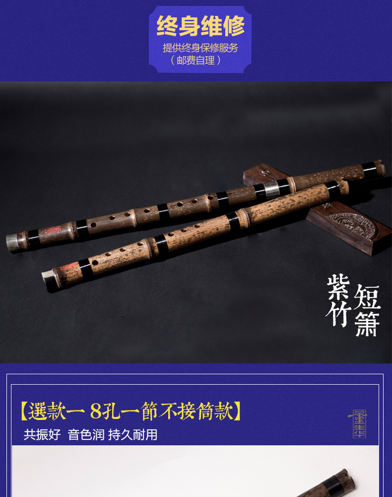 Дун Шэнхуа вводит короткие музыкальные инструменты и инструменты Сяо дверь Флейта для взрослых с нулевым основанием и восемью отверстиями, профессиональная флейта из изысканного фиолетового бамбука