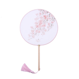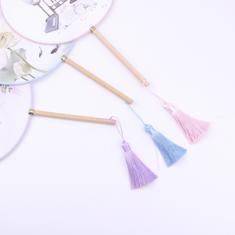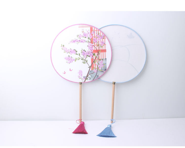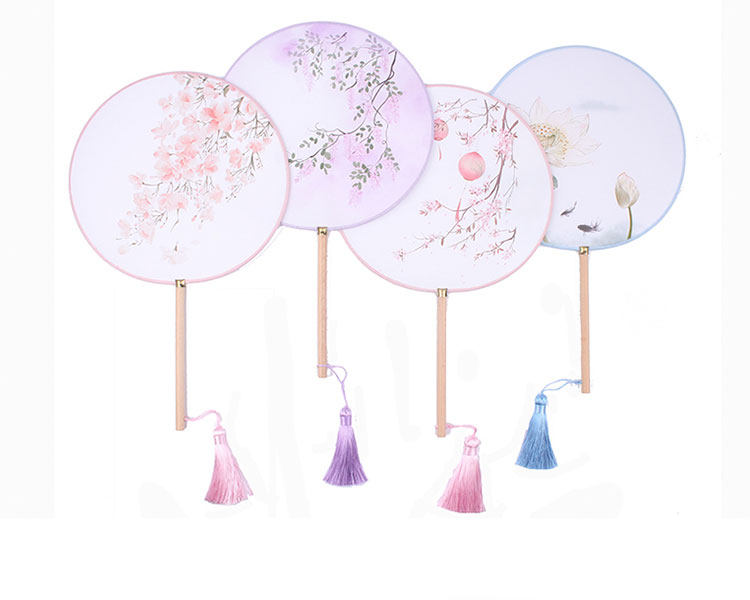 Древний веер круглый веер винтаж классический Китайский стиль hanfu круглый вентилятор дворца веер с длинной ручкой для женщин с бахромой Древний декоративный танец