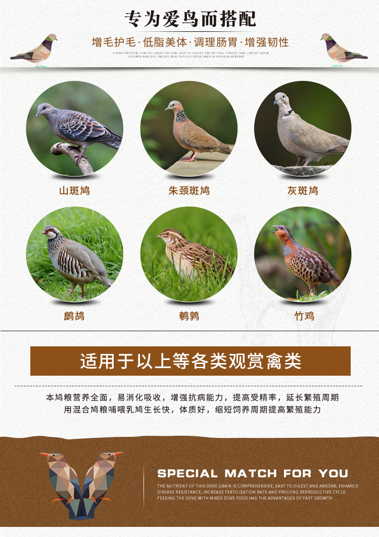 【Преимущества продукта】это стиль Продукт имеет больше пищевых продуктов, питательных, мелких частиц, легко поесть, без отходов, полностью Министерство мало гранулированной еды!Птица съела усиленное сопротивление, высокая Скорость оплодотворения, легко размножаться!