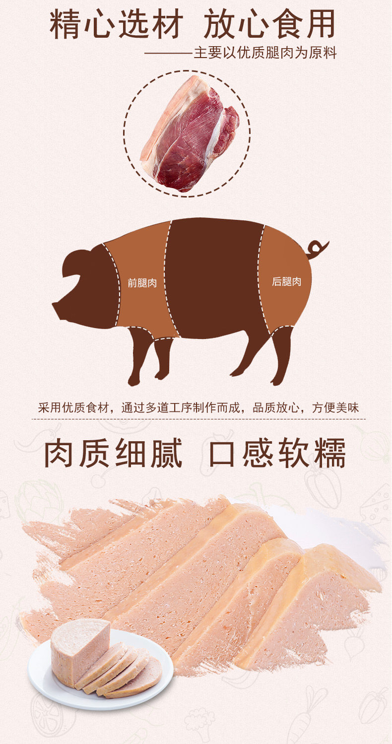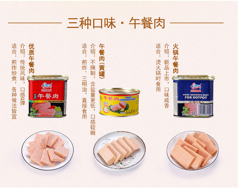 Tulon Beanne Мясная консервированная открытый горячий горшок завтрак пакет Ветчина свинина, готова поесть дверь Специальность еды 360G * 4