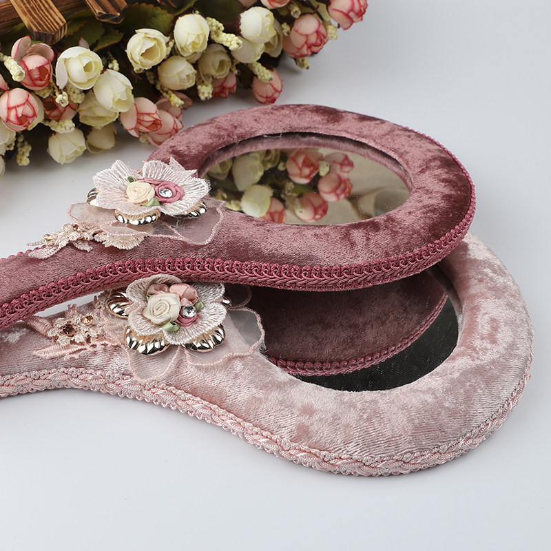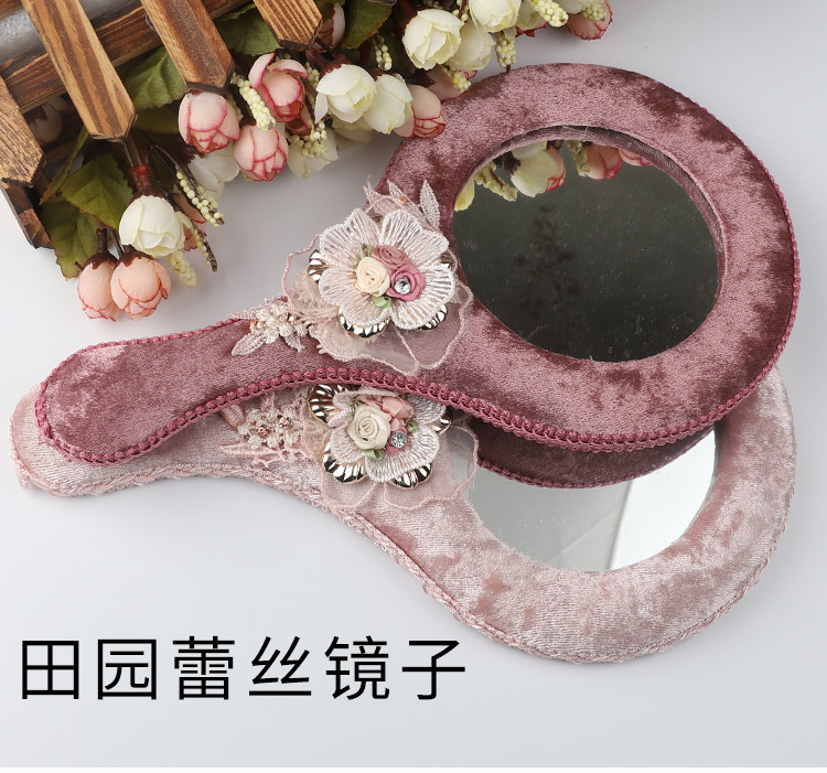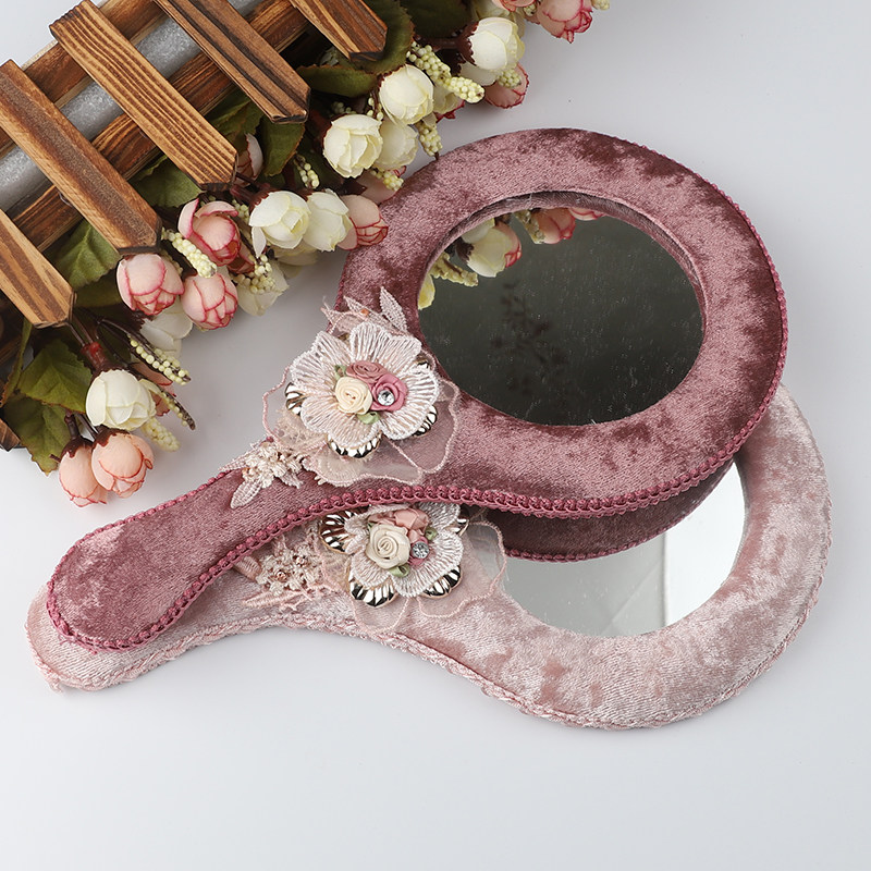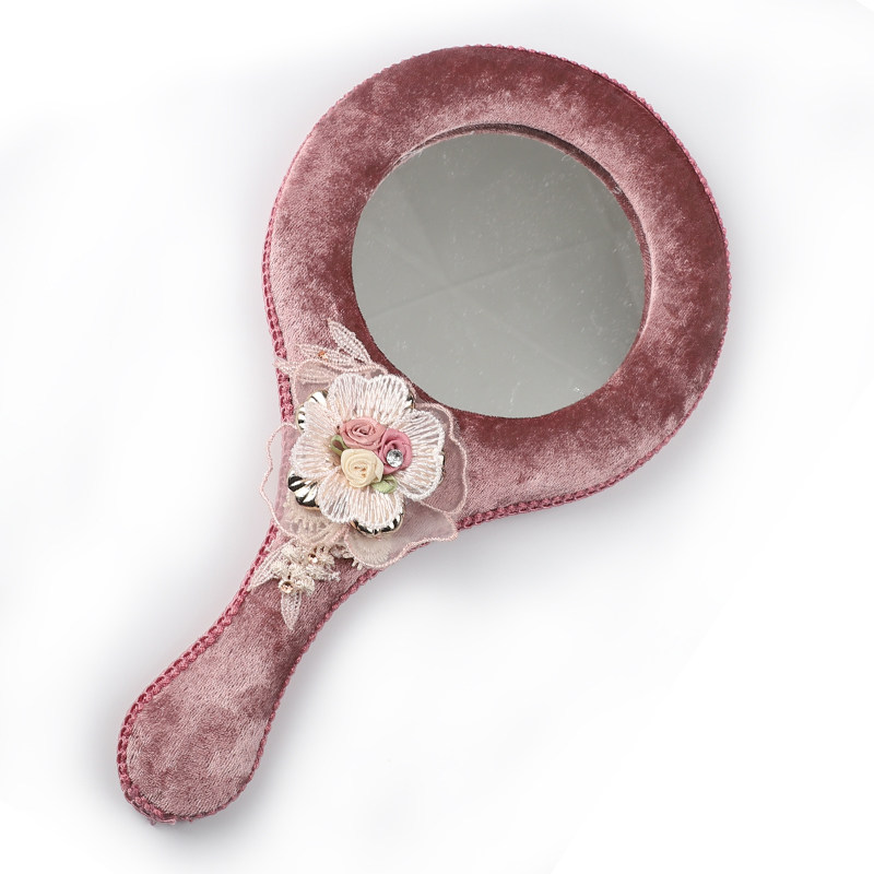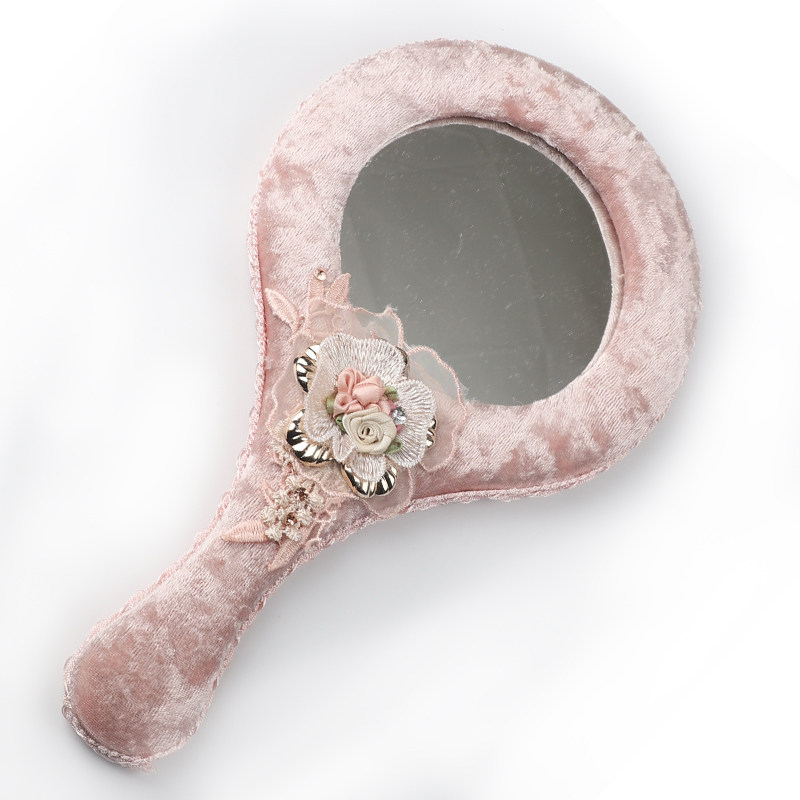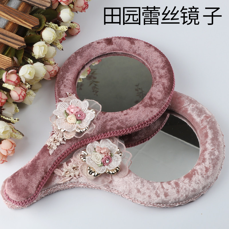 Идиллическая ткань логов зеркало Пухшая ручка зеркало Корейская ручка макияж зеркало Люблю раунд зеркало