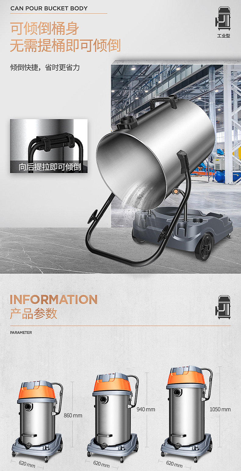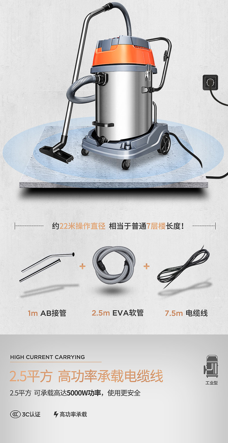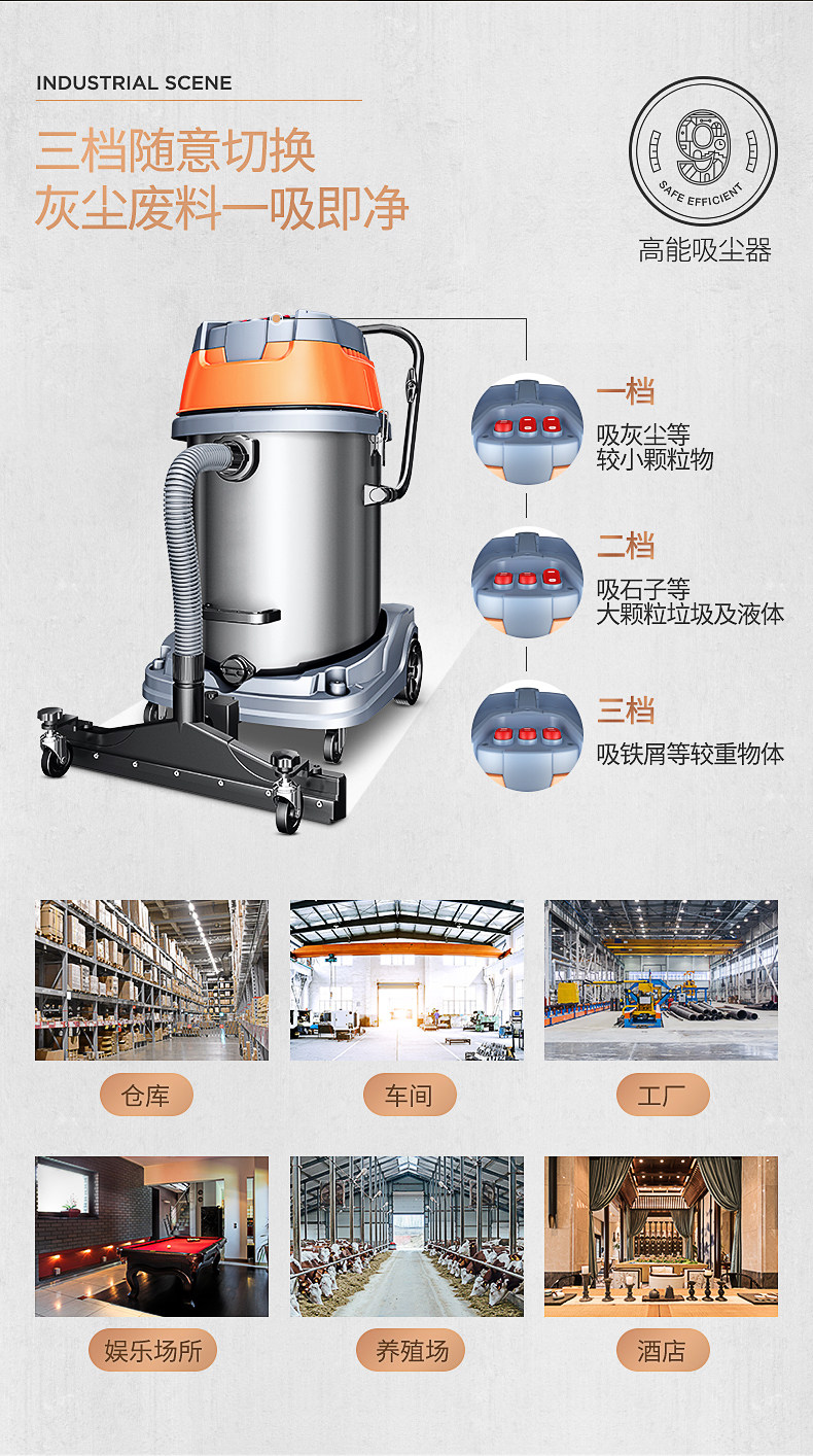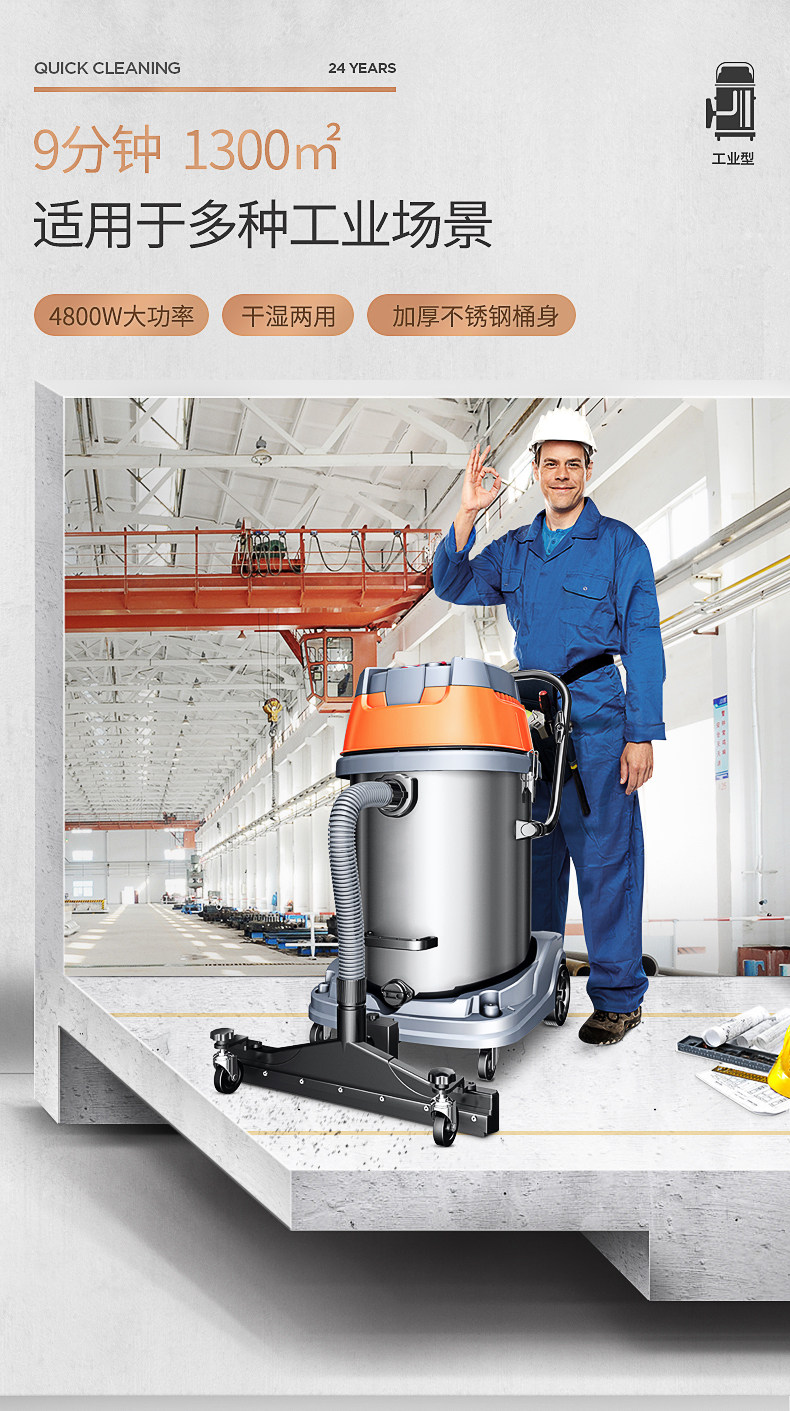 Пылесос Jeno 601S, 4800 Вт, мощный, промышленный, крупномасштабный, заводская, мастерская, пыль, мощный, влажный и сухой.