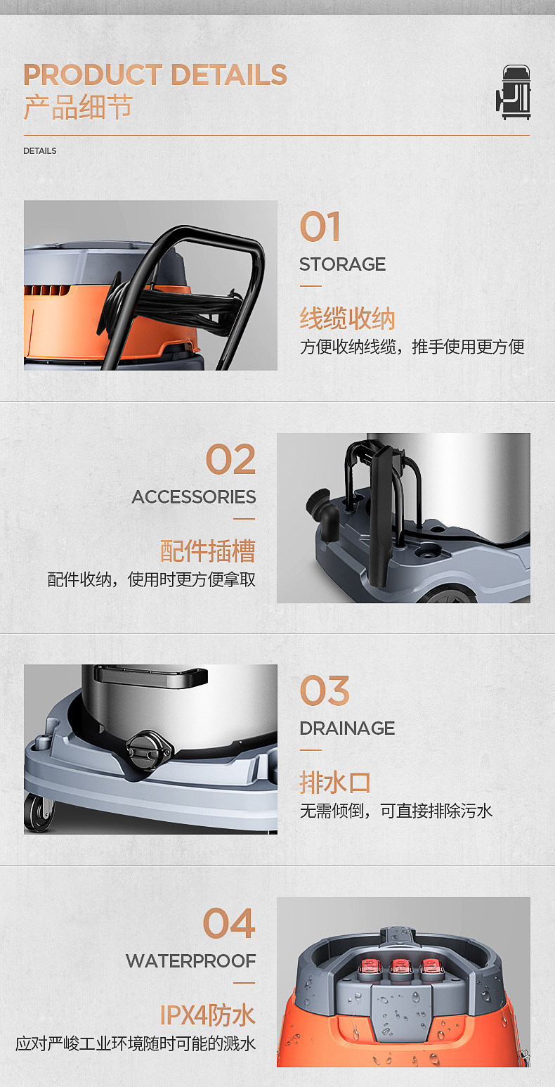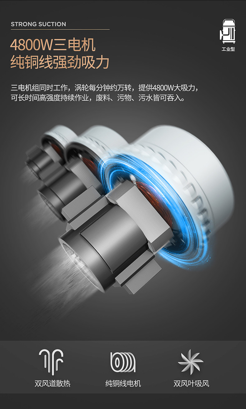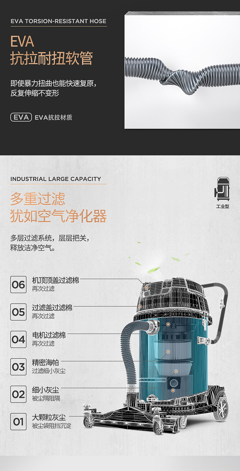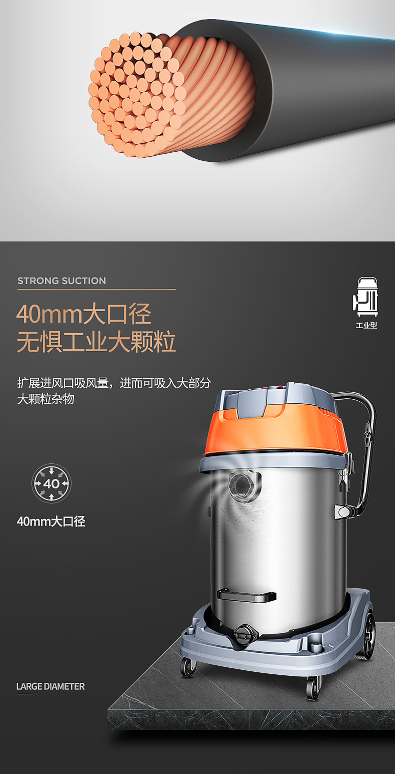Пылесос Jeno 601S, 4800 Вт, мощный, промышленный, крупномасштабный, заводская, мастерская, пыль, мощный, влажный и сухой.