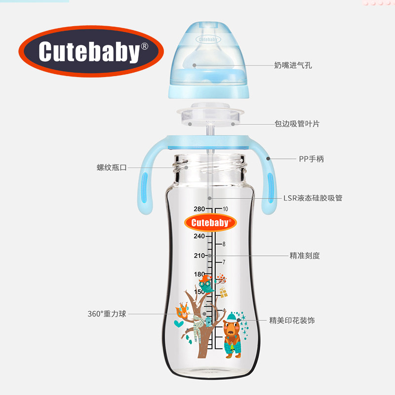 Cutebaby Exit. версия Бутылка на младенца Бутылочное стекло с ручкой ремешок широкий калибр противодействие детские Бутылка