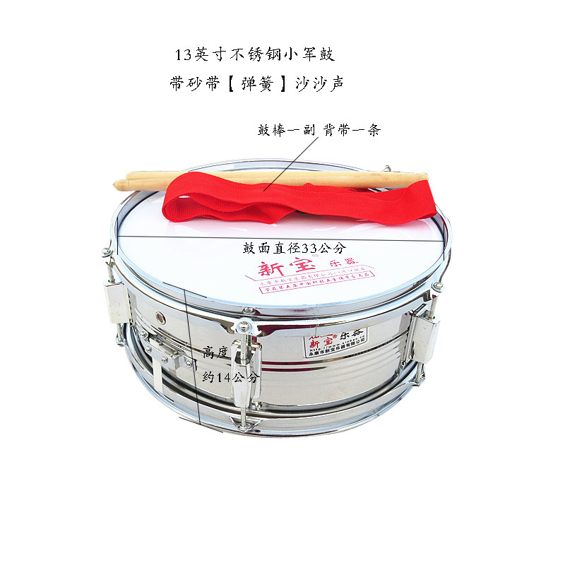 Новый Bao 13-дюймовый из нержавеющей стали Стримовая пружина Маленькая армия Барабан студент Барабан Номер ударил инструмент Snare Brum