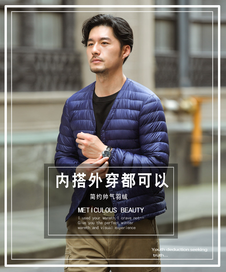 2020 новая коллекция мужской Тонкий и легкий пуховик мужской молодежный круглый воротник большой размер Переносной пуховик с V-образным вырезом куртка