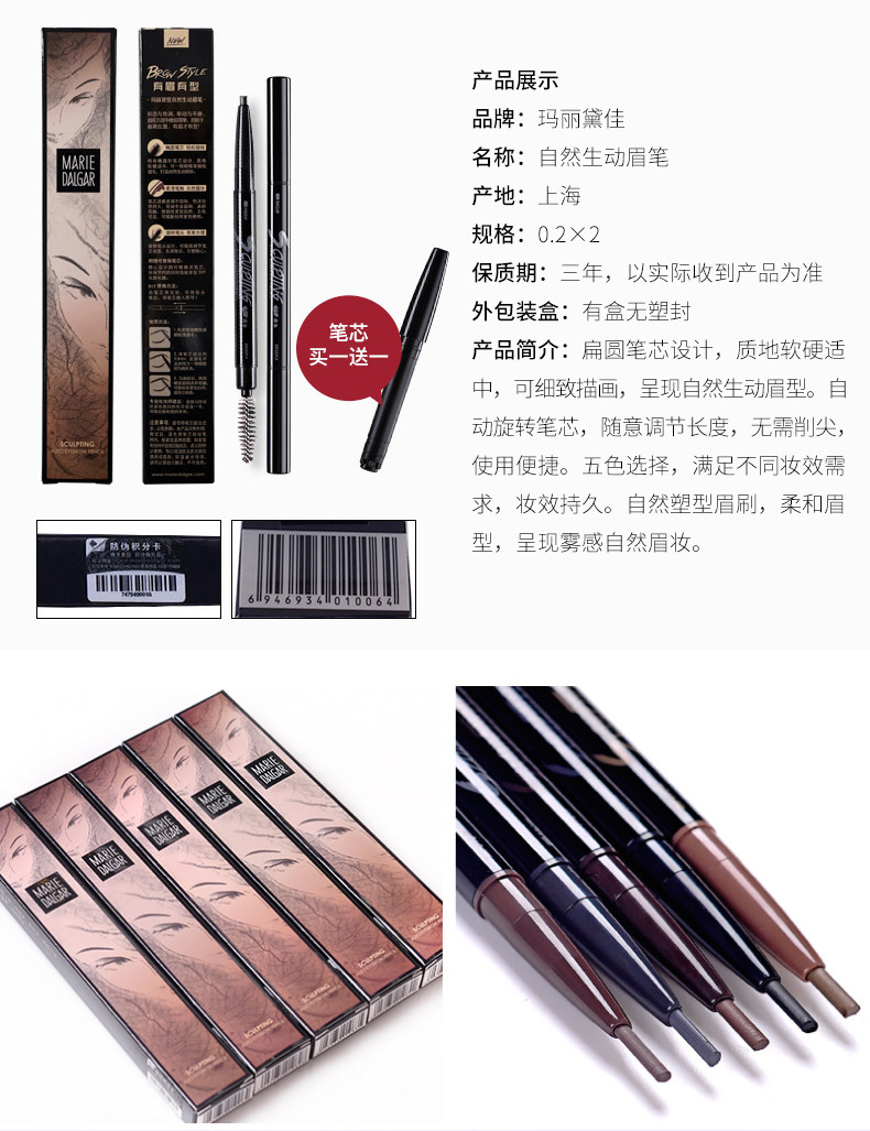Карандаш для бровей Maridella водонепроницаемый Анти-пот, натуральный, долговечный, нелегко обесцвечивать официальный сайт флагманского магазина оригинал Рекомендовано Ли Цзяци