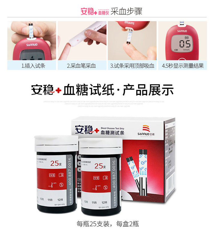 Sannuo Anwen + тест-полоска для определения уровня глюкозы в крови Anwen + тест на сахар в крови полосатый Тестовая бумага Security Plus Voice Security ten Air