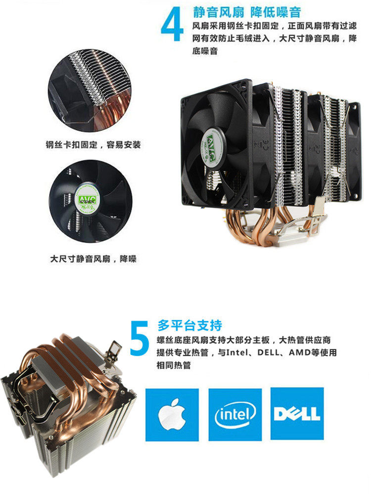 Ультра тихий кулер для процессора AVC 4 с медной трубкой 1155AMD2011 стрелка Вентилятор процессора 1366 настольный X79X58