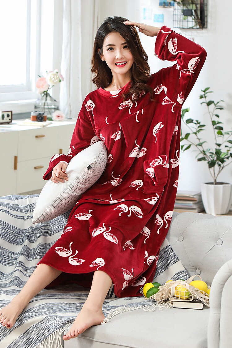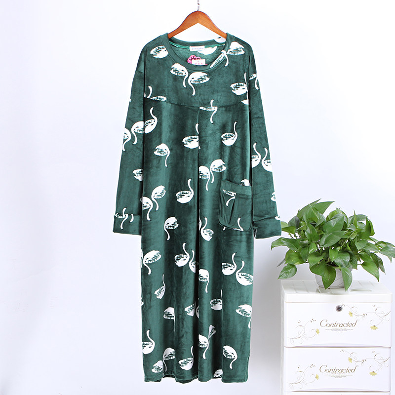 Осень-зима Женский мультфильм плюс удобрения плюс большой размер Жир ММ супер мягкий удерживающий тепло Бархатная пижама 200 кг корейская версия Свободный длинный фасон Ночная сорочка