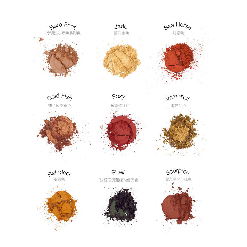 HEDONE1986 Тени для век Journey To The West Sands блестящий Палитра теней для век девяти цветов женская матовая сетка красный желтый Девятицветная ниша