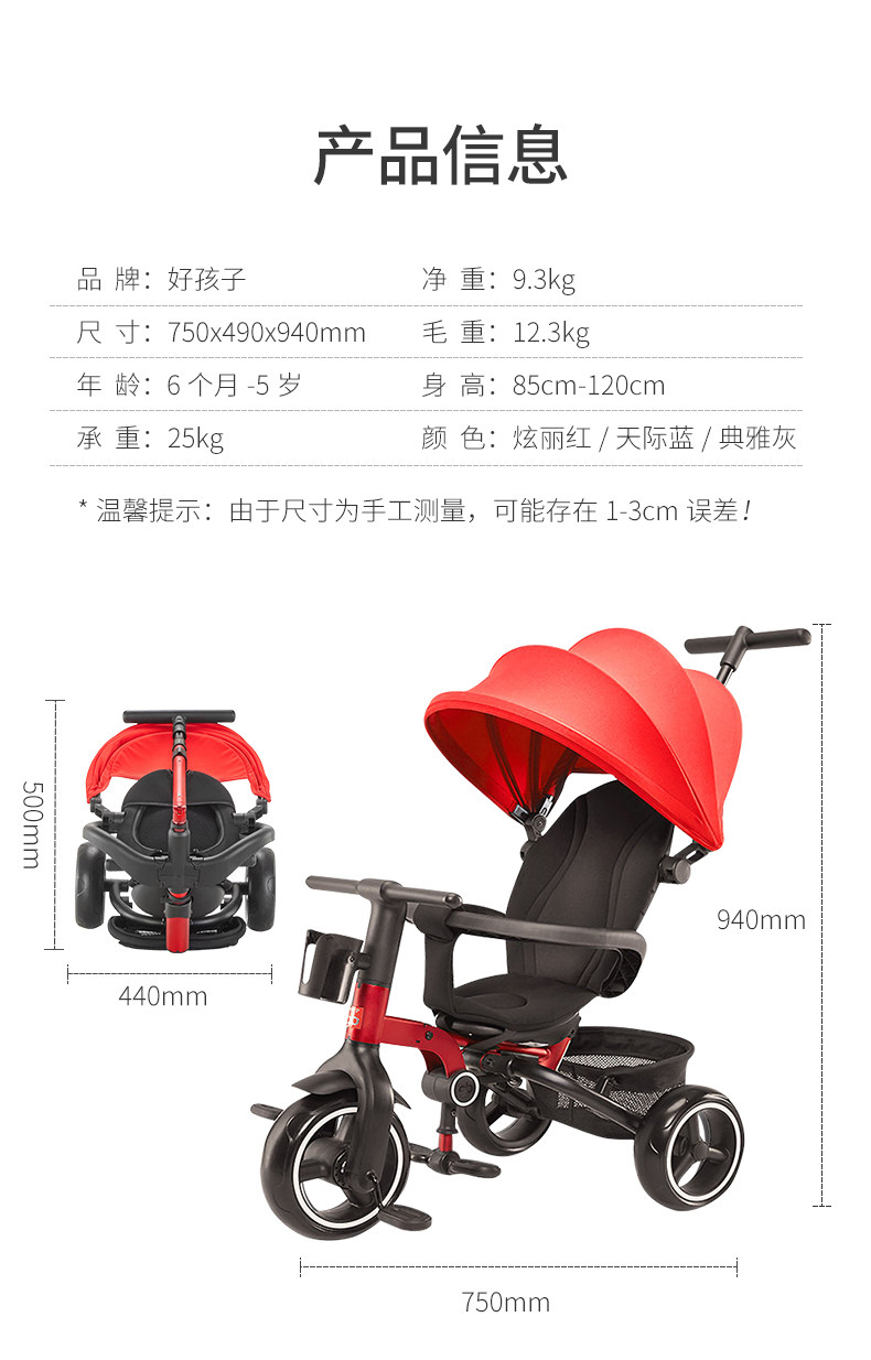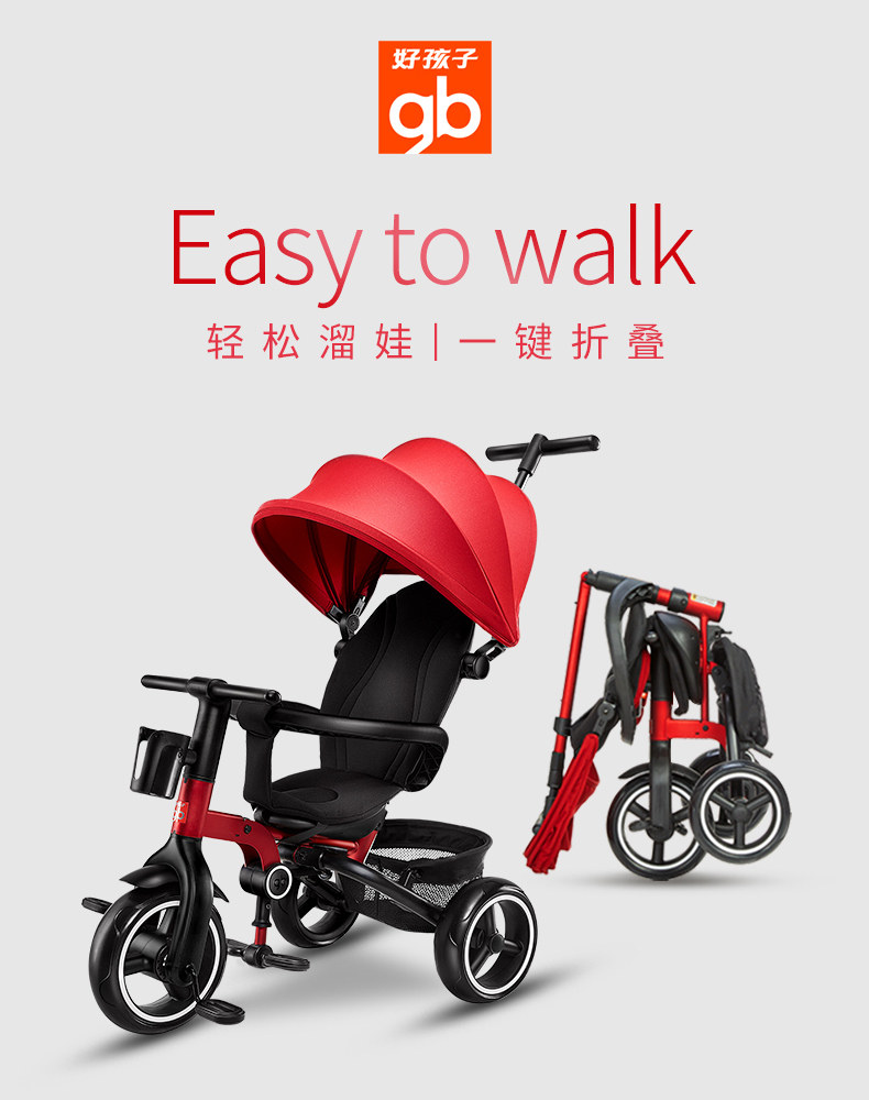 Gb хороший мальчик детские Трехколесный велосипед, велосипед со складыванием детские Игрушки 1-3 года на младенца Медленная тележка для детских артефактов