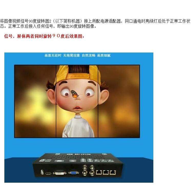 будутПросмотр изображения частота Сигнальный поворотный механизм на 90 градусов 2(К низ Именуется машиной)Подбирать верх Оборудованный адаптер питания, зеленый, когда сетевой порт включен свет После нахождения в нормальном рабочем состоянии. Подключите любой сигнал после нормальной работы, то есть выведите изображение с поворотом на 90 градусов.