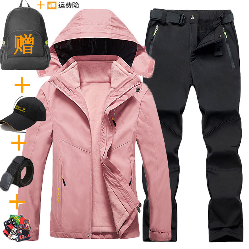 Уличная куртка, комбинезон, штаны подходит для мужчин и женщин, съемный зимний ветрозащитный водонепроницаемый альпинистский комплект, «три в одном»