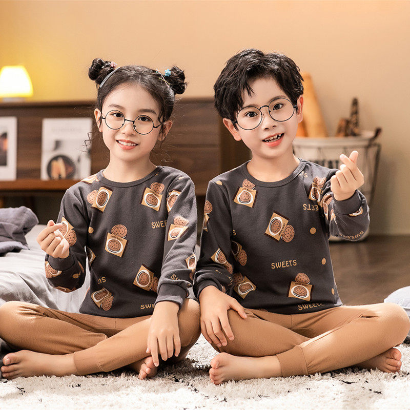 Детские нижнее белье комплект чистый хлопок на мальчика на девочку Проволочные брюки полностью хлопок Ребенок ребенок мужской ребенок удерживающий тепло Осенняя одежда