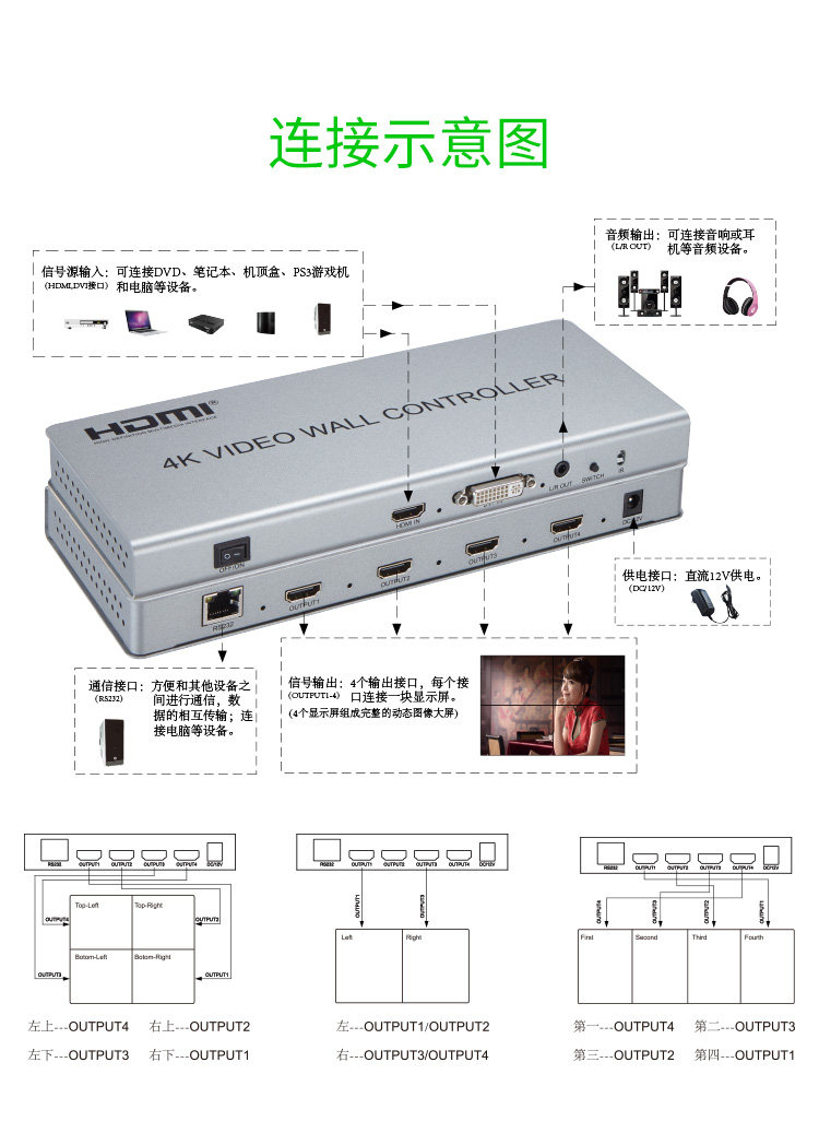4K высокая Qing Four TV Chowing Processor LCD Дисплей Стена Управляющая коробка HDMI1 на 4 OUT спец. предложение