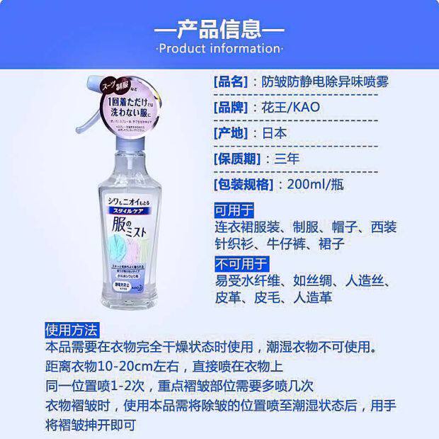 Японский локальный цветок король одежда морщин спрей Бесплатная горячая мокрота антистатический распылительный спрей против морщин на вкус Saunce Spray