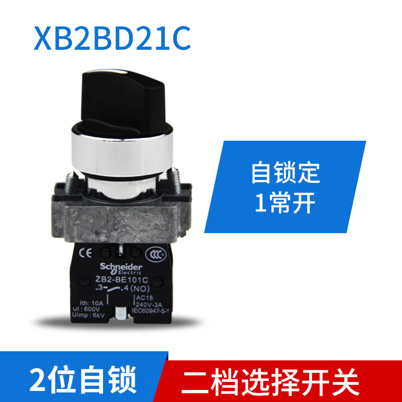Выбор Шнайдера переключатель Вторая передача, 2-позиционная самоблокировка, 1 нормально открытая ручка переключения 22 мм переключатель 2 передачи XB2BD21C