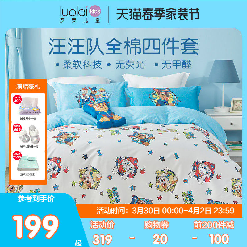 Луол Главная Текстиль Ван Ван чистый хлопок кровать один полностью хлопок Мультфильм мужской Детская общежитие верх Запасы детские 4 предмета