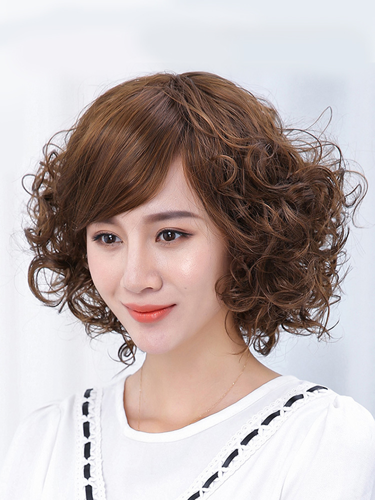 Парик женский короткие волосы популярный женский Бритье лица, короткие вьющиеся вальгусные волосы, естественная косая челка и пушистая полностью Набор для волос