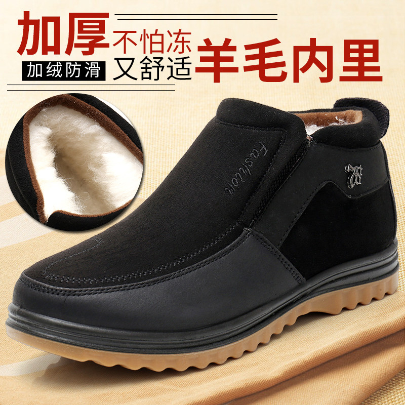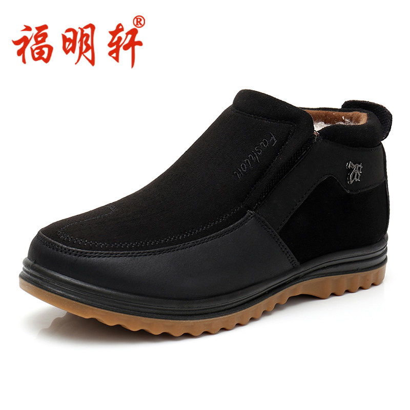 Удерживающий тепло обувь мужской ботинки с утеплением зимний Обувь из ткани старого Пекина замшевый утепленный нескользящие для отдыха высокий Обувь для папы среднего и пожилого возраста