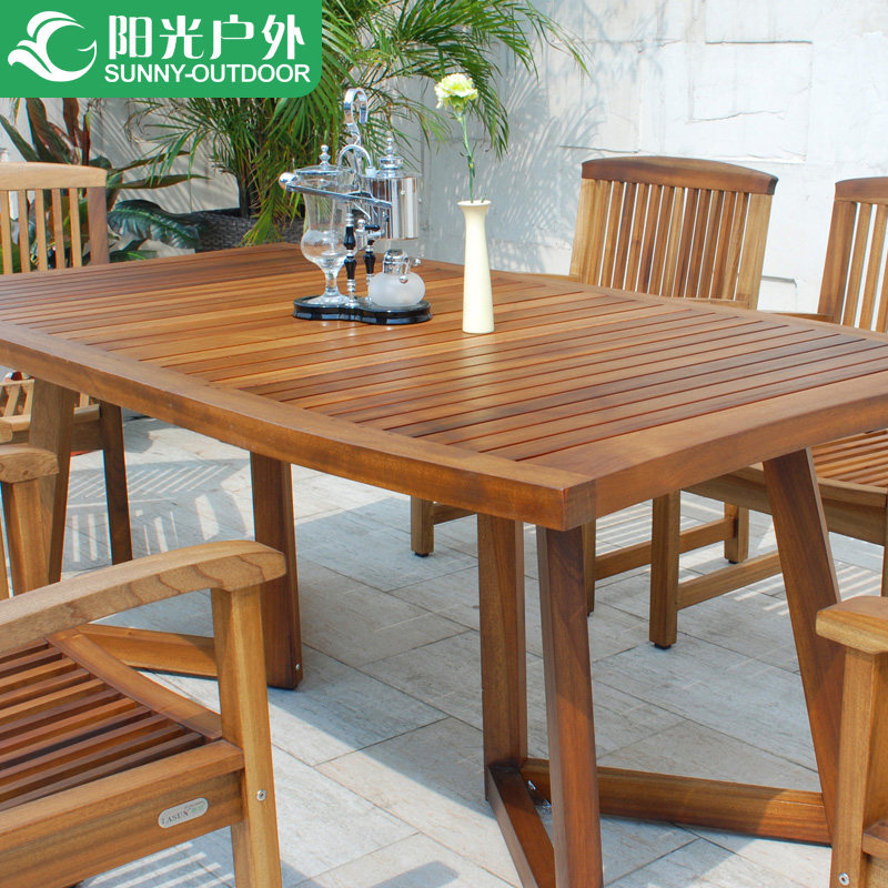 Sunshine Открытая мебель Сад Вутта Таблица и стулья для отдыха Твердый деревянный стол и стул Эллиптический стол шесть стула восемь стула комбинированного стола