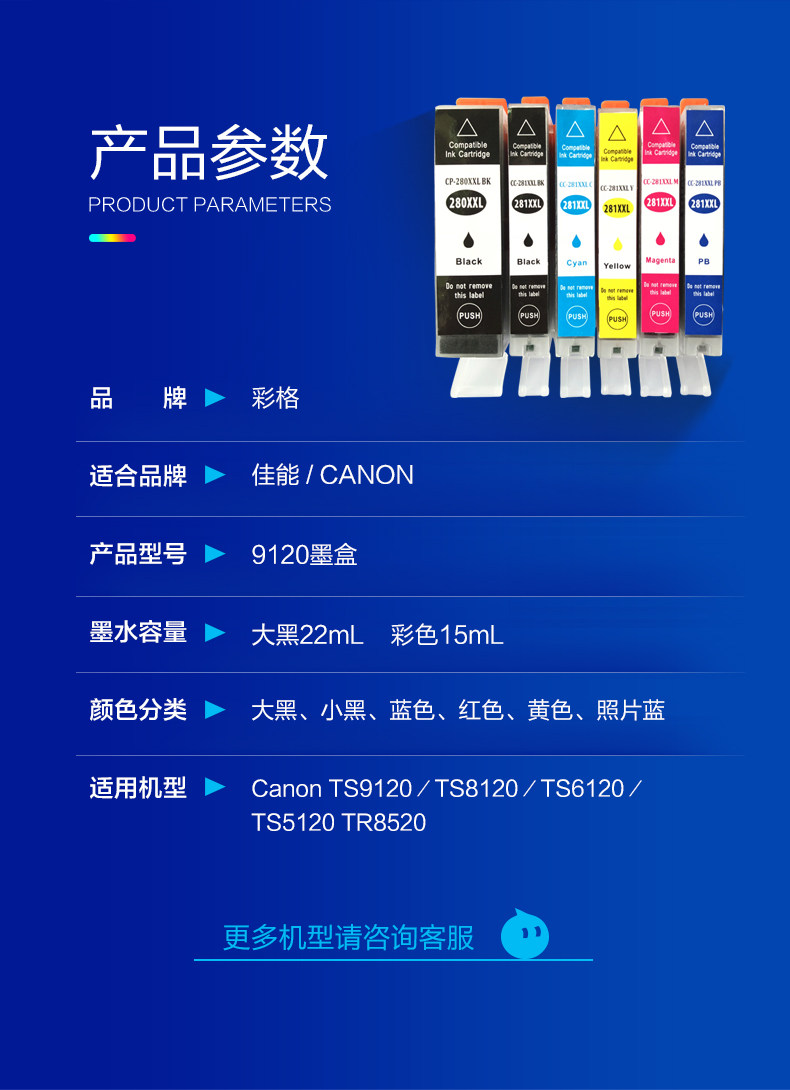 Цвет Совместим с Canon 280/281 Printer Ink Box TS9120 TS8120 TS6120 TS5120 TR8520 PGI-280 Совместимая чернильная коробка