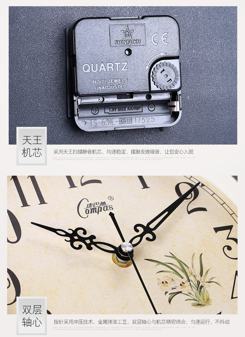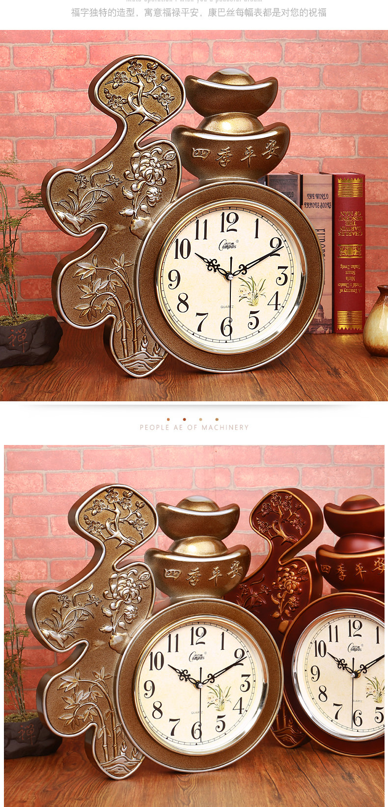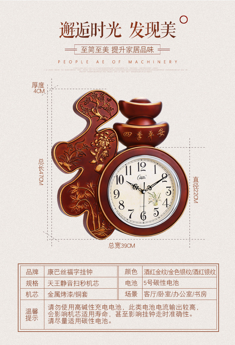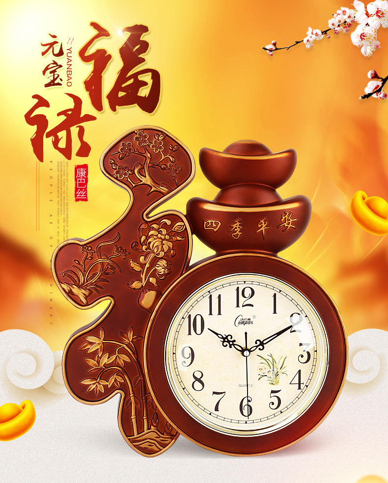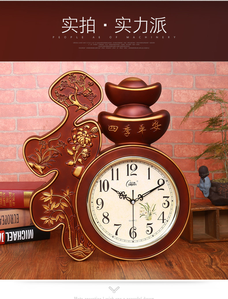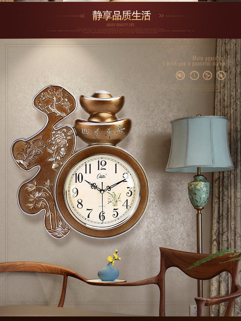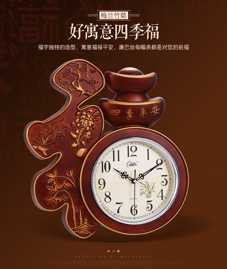 Compas гостиная настенные часы спальня офис немые настенные часы творческий китайский стиль благословение слово Домашние электронные кварцевые часы