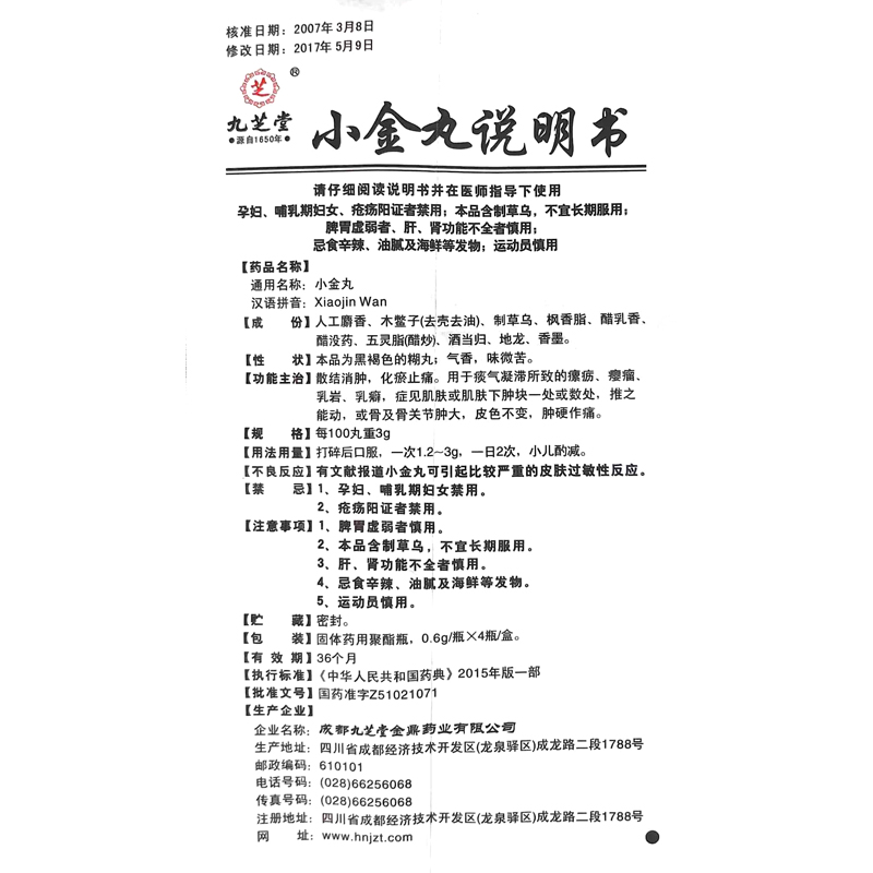 Jiuzhitang Xiaojin таблетки 0,6 г * 4 бутылки / коробка