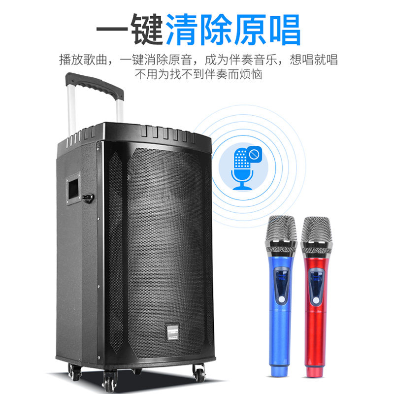 Настоящее время поколение 15 дюймов кадриль аудио открытый тележка мобильный портативный высокомощный плеер с без Линейный микрофон 12 дюймов для домашнего караоке синий Зубные тяжелые басы танцуют вживую, поющий спикер на открытом воздухе
