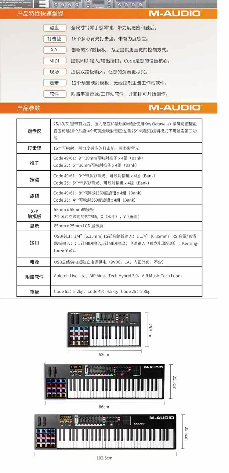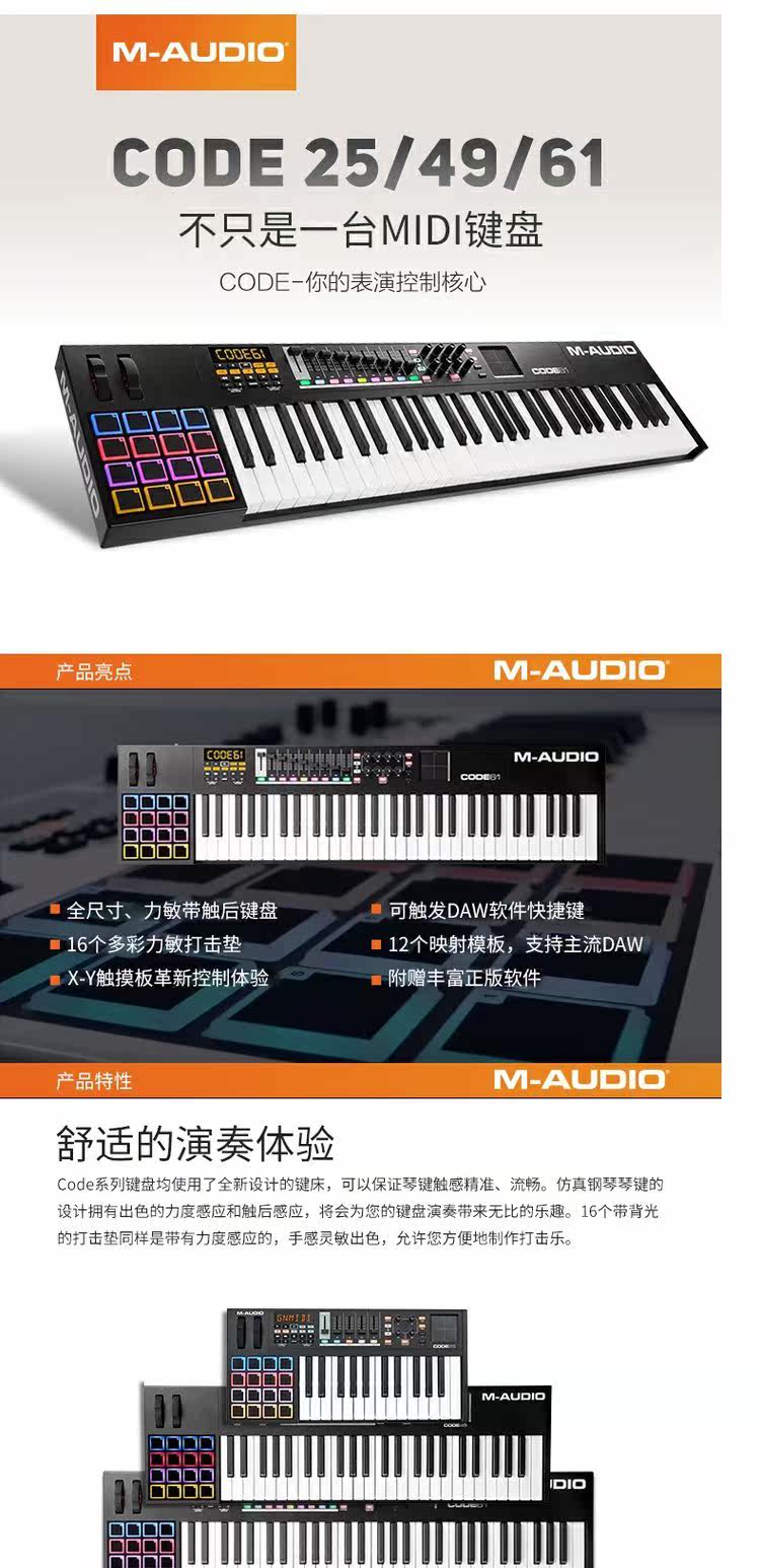 M-Audio Code 25/49/61 Профессиональный MIDI Arrent Cheelboard Electronic Sound Strike Pad Midi Controller