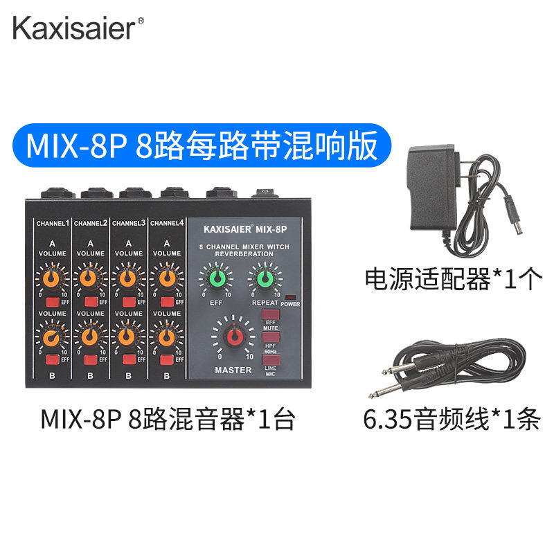 Kaxisaier Mix-8 Reverbeter 8-канальный микшер Мини-микшер Малый музыкальный инструмент Микрофон расширитель