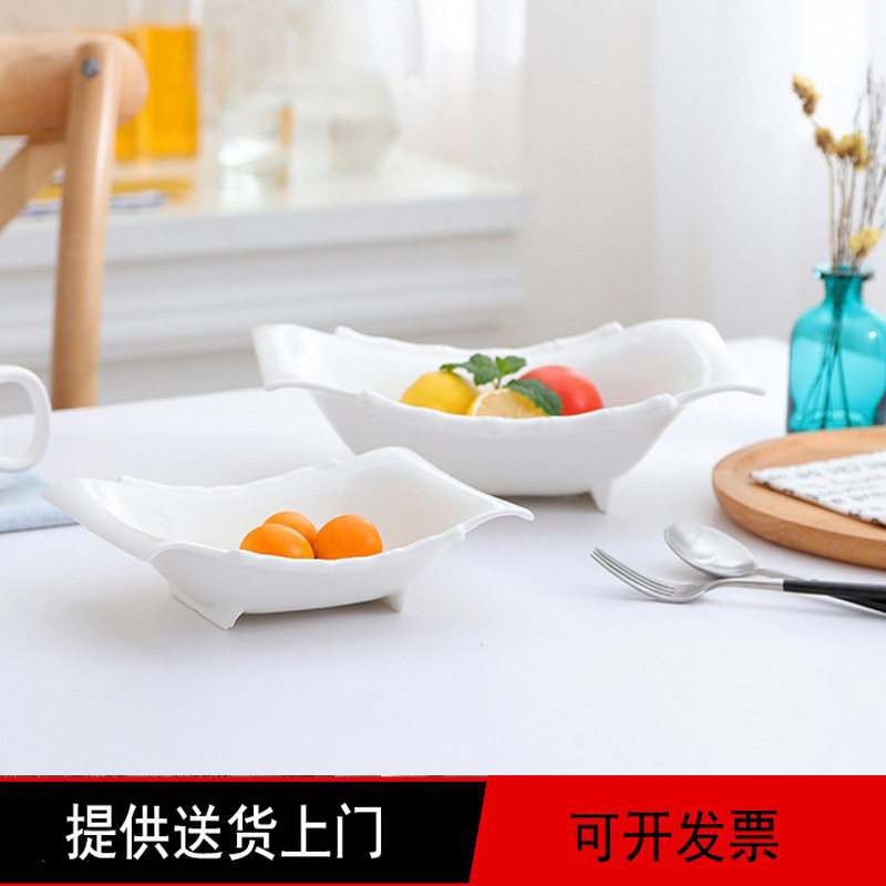 Прямая продажа с фабрики квадратная бамбуковая керамическая тарелка для фруктового салата, особая форма для отеля, тарелка для супа, может быть настроена с помощью микроволновой печи