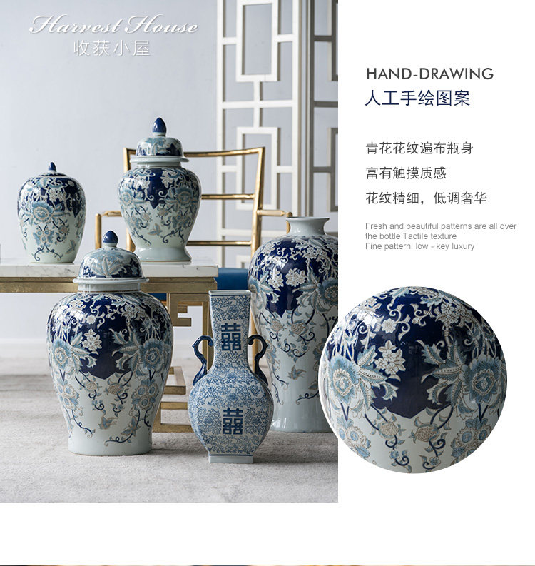 Экспорт хижины для сбора урожая в США. Раскрашенная вручную сине-белая керамическая ваза. Общая бутылка треснула. принт Европейский стиль новый Китайские ювелирные изделия сочетаются и сочетаются