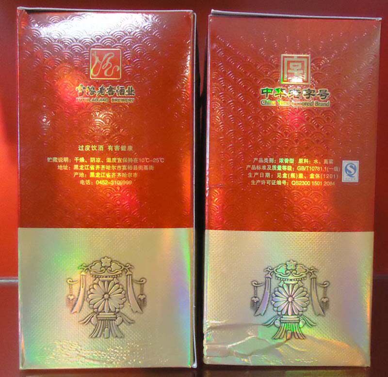 Богатый старый белый 1 коробка вина 6 бутылок золотого богатства 52 ° 500 мл сильного аромата черный Longjiang Grain Wedding Banquet