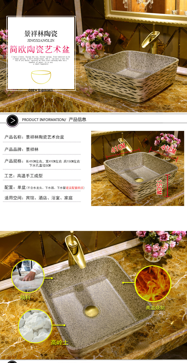 JL поверхностный керамический арт прямоугольный стол верх Горшок винтаж Бассейн бассейна бассейна бассейна санитарный бассейн