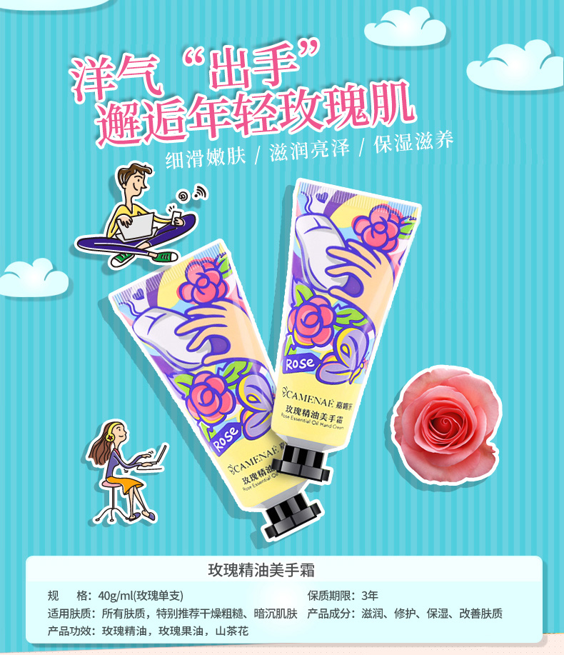 Jia Mei Le Rose Essential Oil Cream Cream 6 Увлажняющий увлажняющий принт Розовое эфирное масло