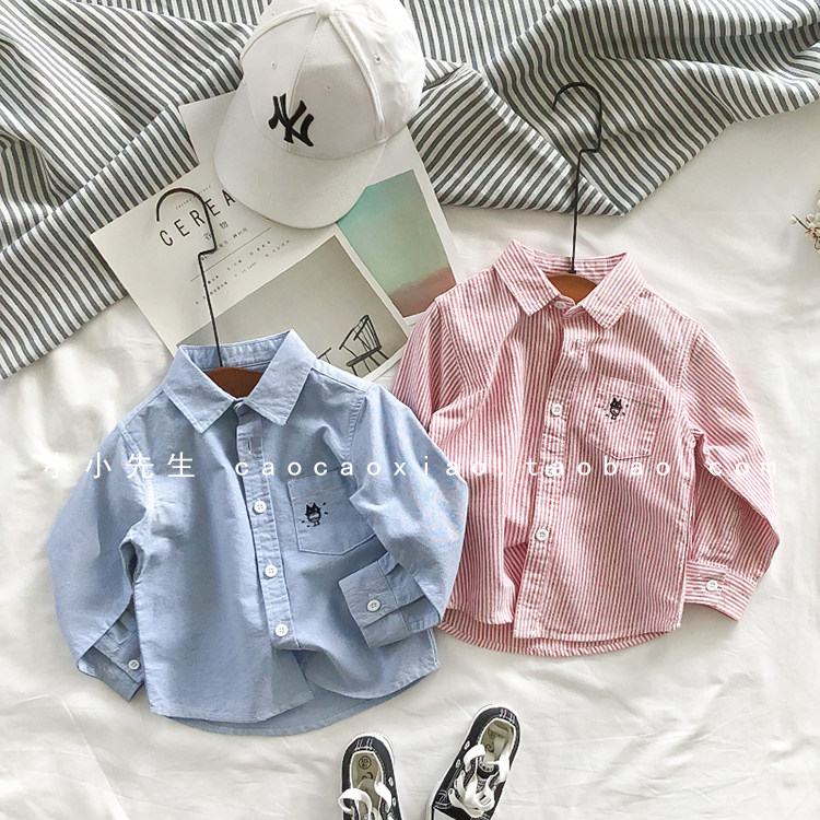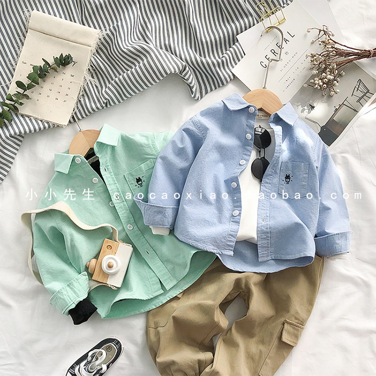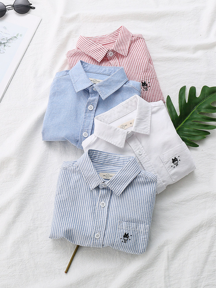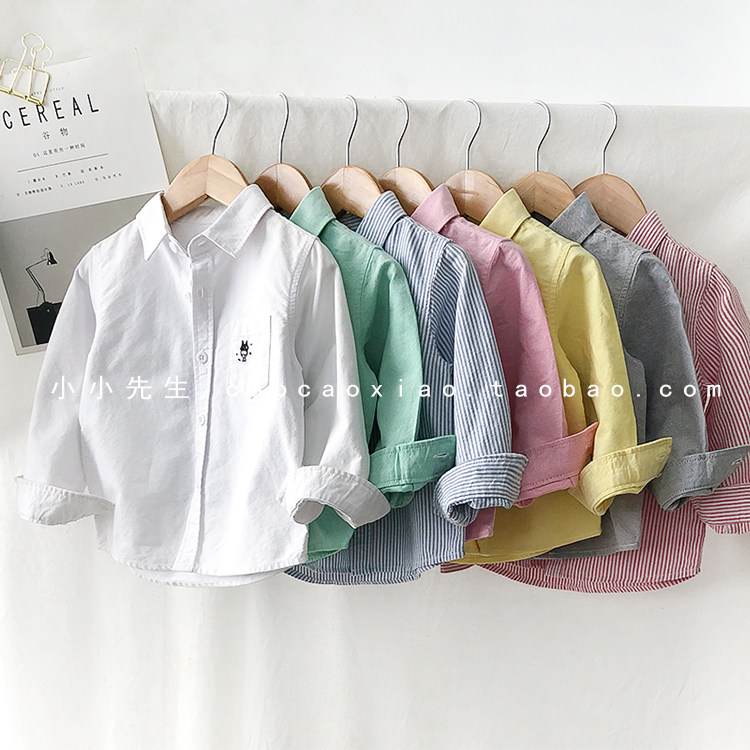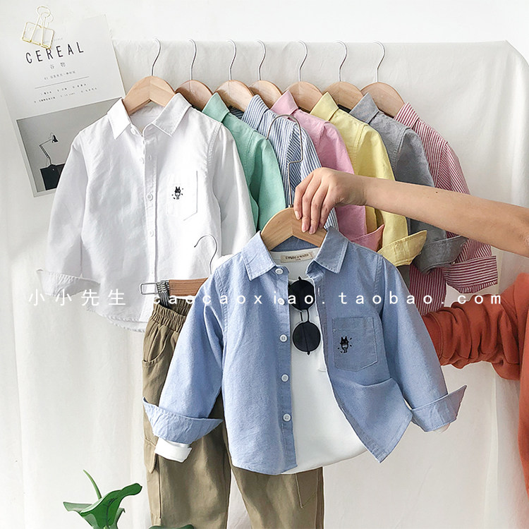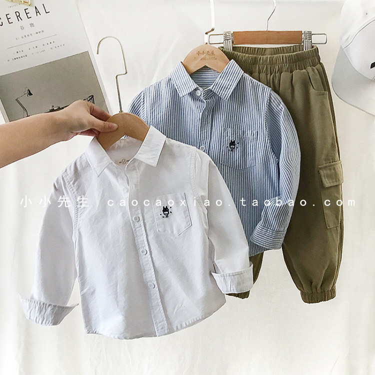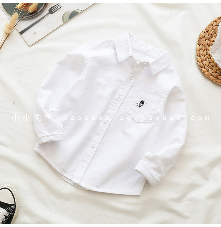 На мальчика длинный рукав сорочка чистый хлопок демисезонный новая коллекция детское детские белый лацкан верх одежда детские Красивый рубашка Весенняя одежда