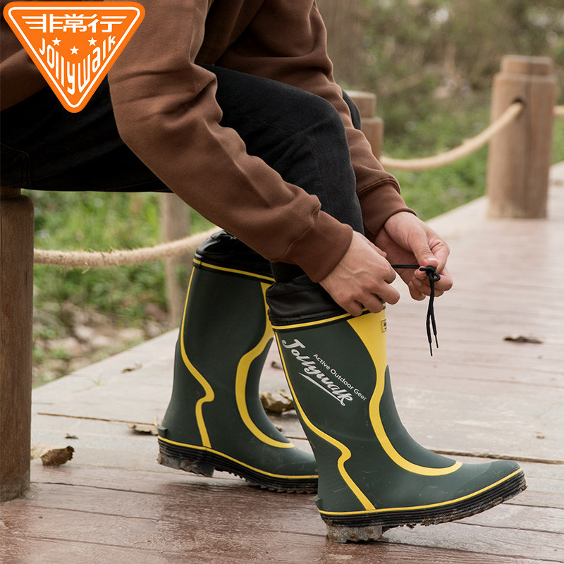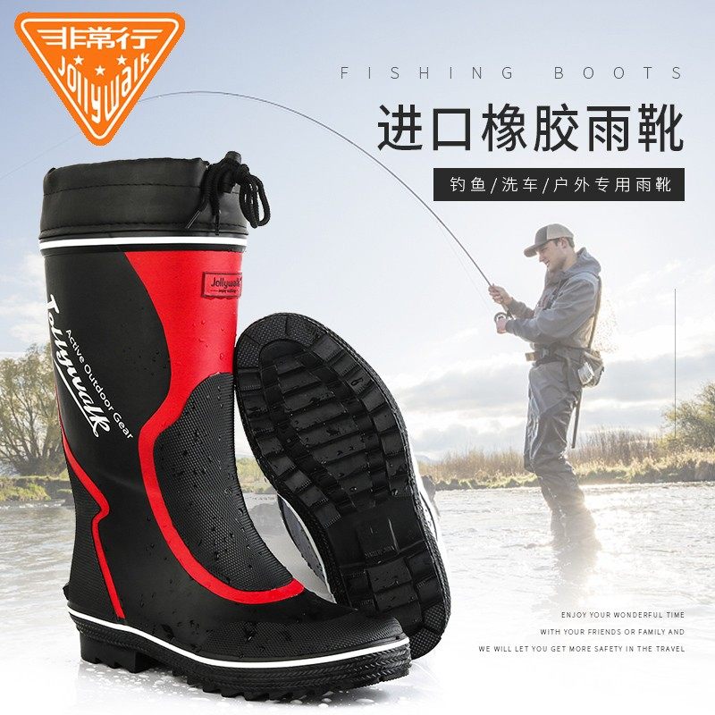 Дождь обувь мужской осень-зима время года высокие Резиновые водяные туфли водонепроницаемый нескользящие Рабочая обувь популярный Ботинки дождя Рыболовные туфли Длинные тубовые туфли