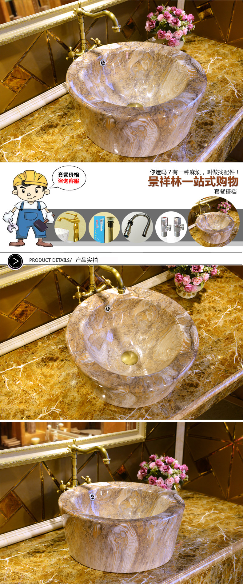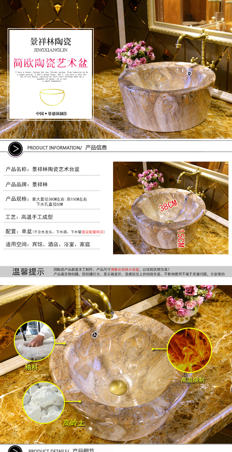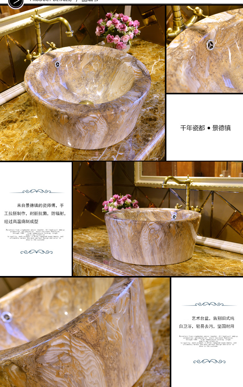 Бесплатная доставка по китаю Умывальник для умывальника Jingdezhen Art в европейском стиле верх Раковина - мрамор с прямой талией принт