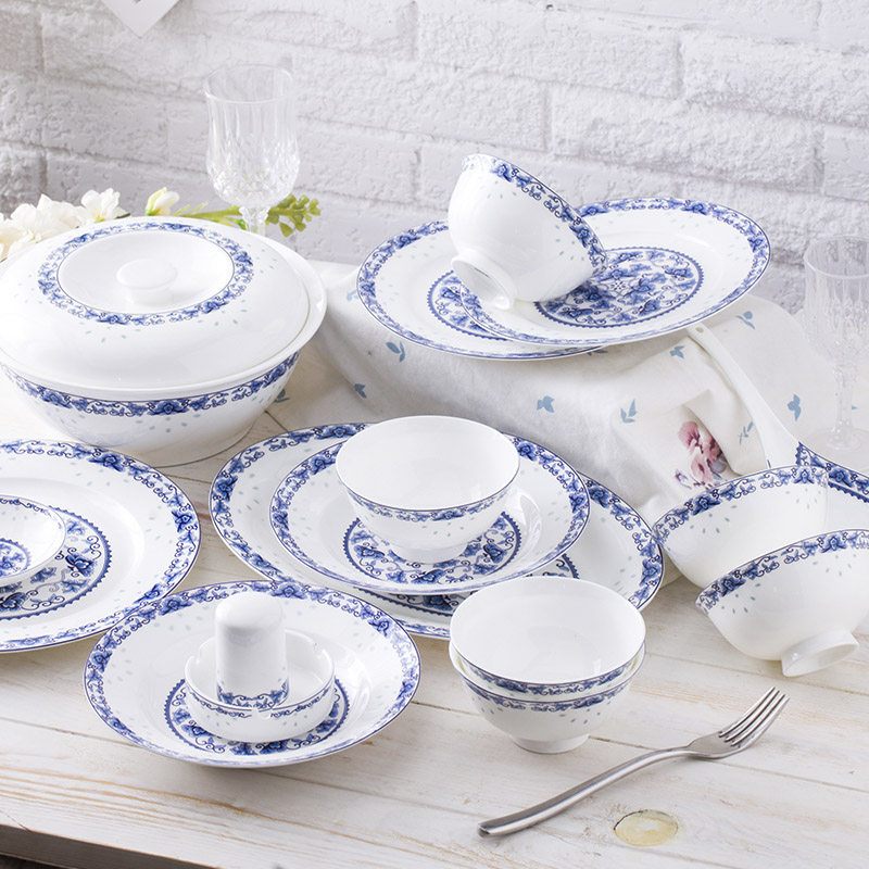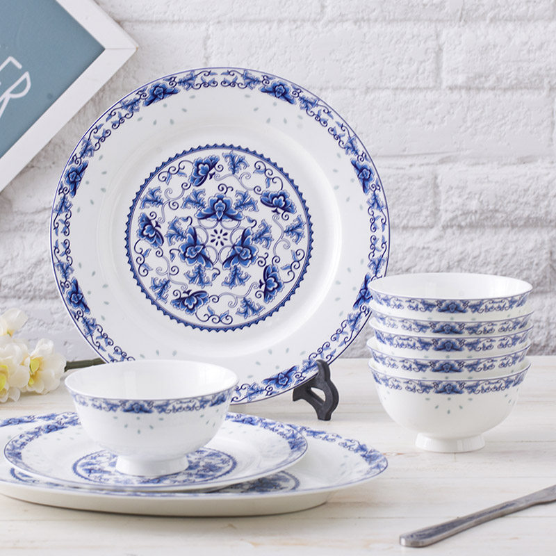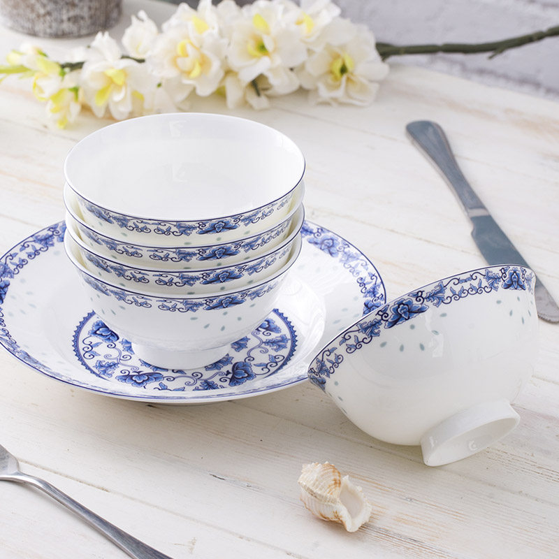 Посуда комплект Чаша костяная розовая чаша керамическая бытовая тарелка комбинация Jingdezhen китайская посуда фарфоровый шар
