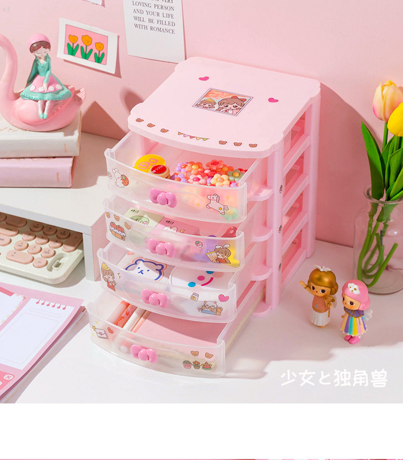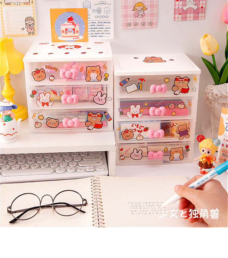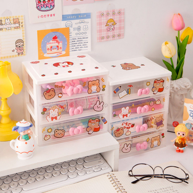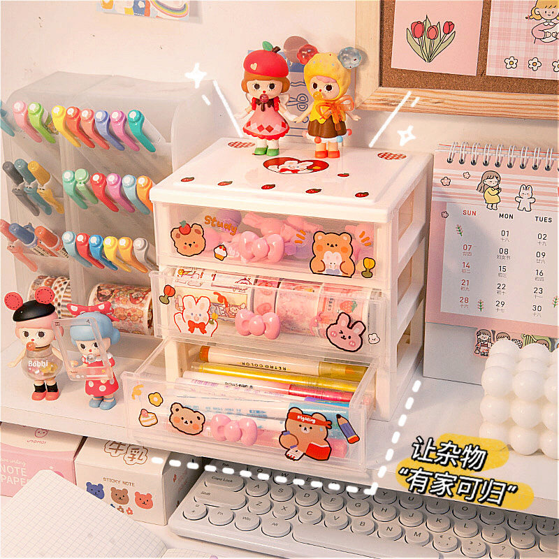 Милый ящик органайзер Рабочий стол Маленькая коробка Аксессуары для волос Офисная стойка Девушка Студенты сердца
